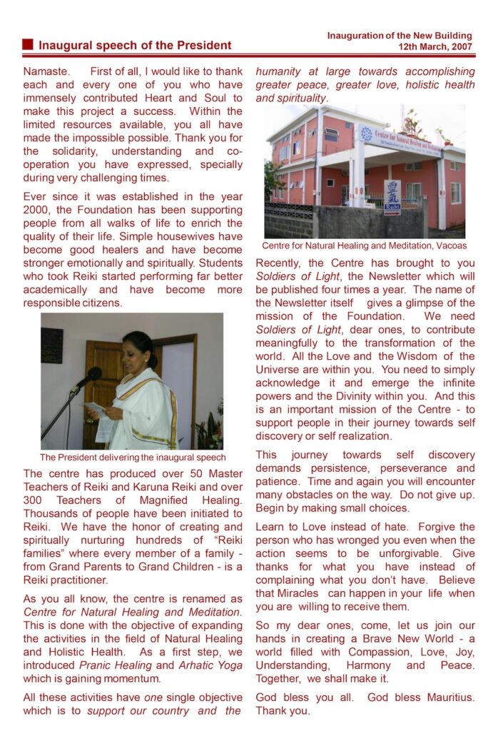 In October 2006, in view expanding the activities in the field of Natural Healing and Holistic Health, and offering other healing modalities under the same umbrella in a universal manner, the name of the association Reiki Foundation was changed to Centre for Natural Healing and Meditation