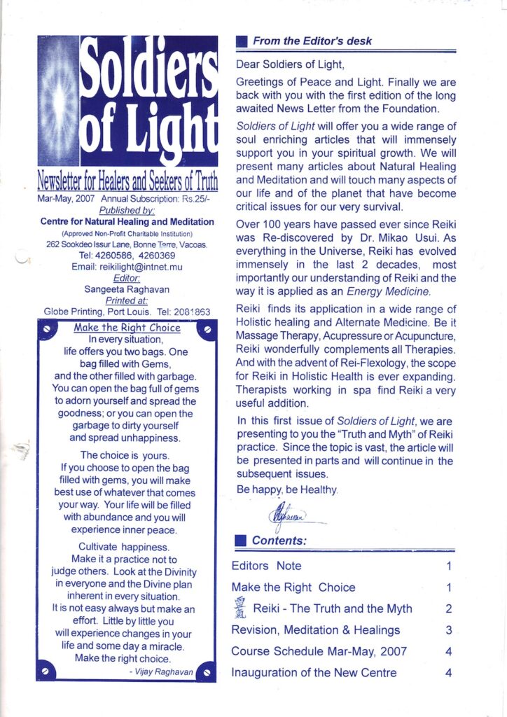 On 1st April 2005, Reiki Foundation was registered at the Registrar of Associations, with Reg no. 8452.