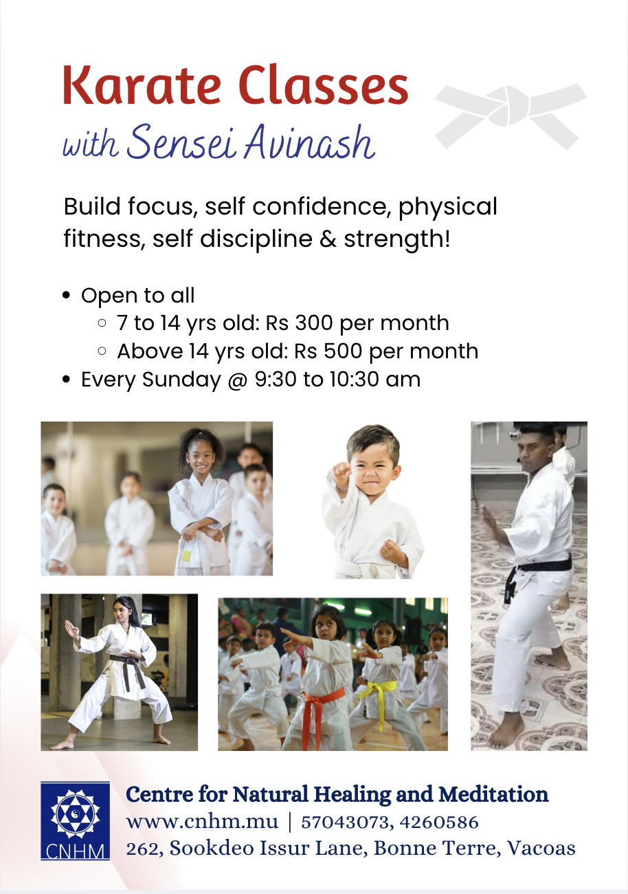 Karate Classes with Sensei Avinash Benefits: Build focus, self confidence, physical fitness, self discipline & strength! Open to all 7 to 14 yrs old: Rs 300 per month Above 14 yrs old: Rs 500 per month Every Sunday @ 9:30 to 10:30 am